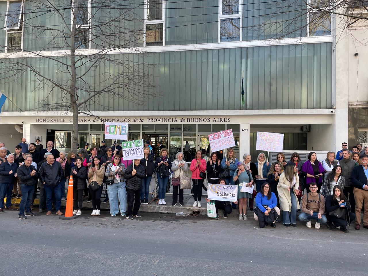 Semanas después de ese pasar en comisiones, odontólogos de toda la provincia se manifestaron en las escalinatas del edificio Anexo de la Cámara de Diputados bonaerense para hacer saber su rechazo a la iniciativa de Lissalde. Autoconvocados por medio de las redes sociales, decenas de beneficiarios del COMEI se agolparon en las calles céntricas de La Plata para, con carteles y un megáfono, expresar su disconformidad sobre el texto parlamentario.